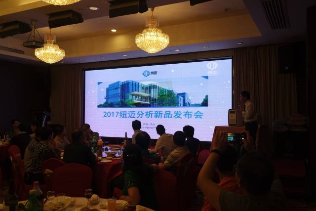 紐邁研發(fā)經(jīng)理?xiàng)钜碓谕硌绗F(xiàn)場(chǎng)做紐邁新產(chǎn)品的發(fā)布,紐邁2017年正式推出新品——核磁共振顆粒表面特性分析儀,用于工業(yè)、科研中如電子、醫(yī)藥、材料等多個(gè)領(lǐng)域。