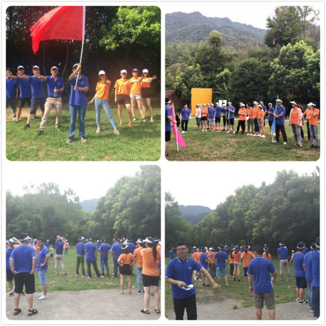 午餐和簡單休整之后,下午,團建拉開戰(zhàn)幕,分成10支隊伍,男女搭配,威武登場,隊旗、口號、戰(zhàn)歌,一樣都不能少;隊長、隊蜜、保安,一個都不能缺。兩兩對陣,抑或團隊配合,聽指揮,尋幫助,合作第一,共贏至上。