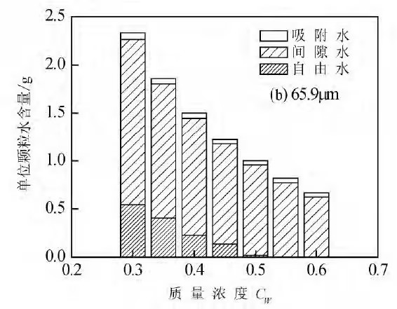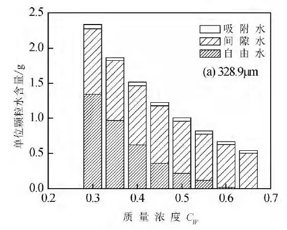 (2)在一定粒徑下,吸附水含量與濃度無關,間隙水的含量隨著濃度的增大而增多,自由水的含量則隨濃度的增大而減少。在一定濃度下,吸附水和間隙水量與粒徑呈負相關,自由水量與粒徑呈正相關。