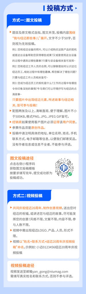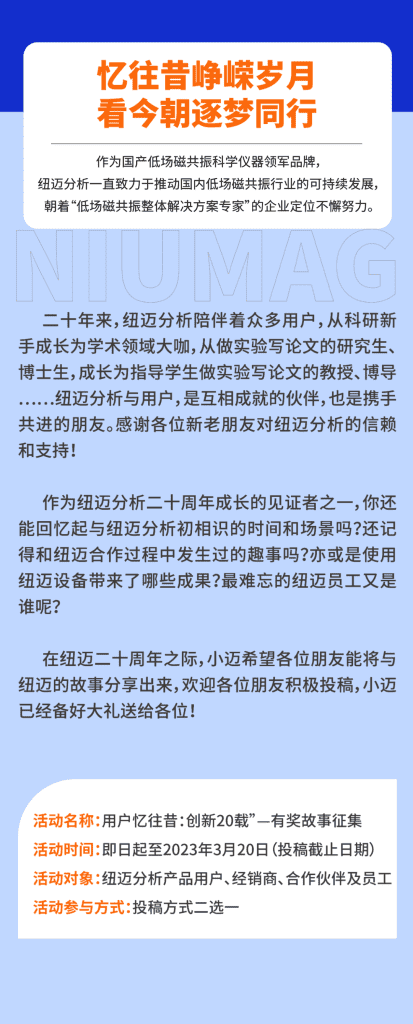 【紐邁20周年慶】用戶憶往昔,創新20載-有獎故事征集正式開始!千元禮品已備好,等你來投稿!