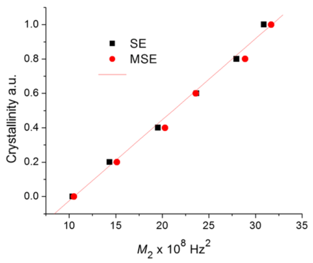 對(duì)于結(jié)晶性評(píng)價(jià)中的結(jié)晶度測(cè)量,良好的相關(guān)性結(jié)果清楚地表明,使用MSE序列的方法更省時(shí)省力。同時(shí),這樣跨領(lǐng)域研究的方法,也會(huì)因?yàn)榈蛨?chǎng)核磁技術(shù)的不斷普及而越來越受歡迎。