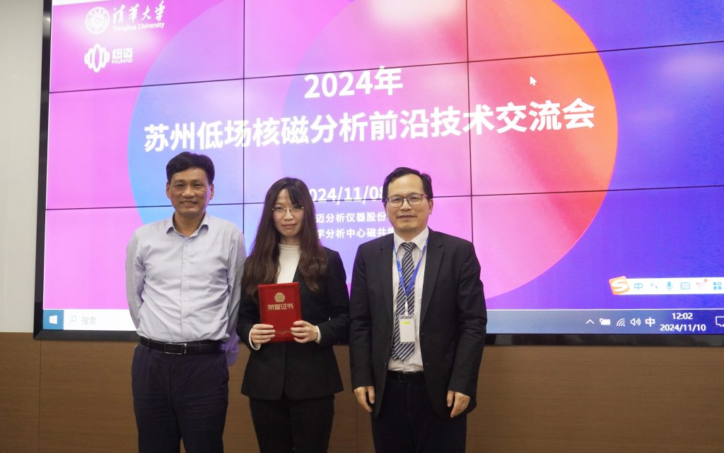 特別值得一提的是,在本次低場(chǎng)核磁分析前沿技術(shù)交流會(huì)上,紐邁公司舉行了一場(chǎng)隆重的頒獎(jiǎng)儀式,表彰了清華大學(xué)陳莉莉博士的杰出貢獻(xiàn)。陳莉莉博士以第一作者身份在《Science》雜志上發(fā)表了題為《A hyperelastic hydrogel with an ultralarge reversible biaxial strain》的學(xué)術(shù)論文,該研究基于蘇州紐邁分析公司的設(shè)備支持,利用低場(chǎng)核磁共振技術(shù)對(duì)水凝膠進(jìn)行了表征,這標(biāo)志著使用紐邁設(shè)備的研究成果首次登上《Science》雜志。為此,紐邁公司特向陳莉莉博士頒發(fā)了榮譽(yù)證書和獎(jiǎng)金,并將持續(xù)支持、表彰陳莉莉博士利用低場(chǎng)核磁技術(shù)發(fā)表《Nature》、《Science》正刊等高水平期刊學(xué)術(shù)文章。我們期待并鼓勵(lì)更多基于低場(chǎng)核磁技術(shù)的卓越研究能夠涌現(xiàn),并在國(guó)際頂級(jí)學(xué)術(shù)期刊上大放異彩。