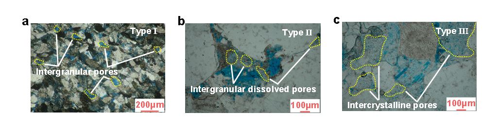 圖1 三類儲(chǔ)層類型典型孔隙類型