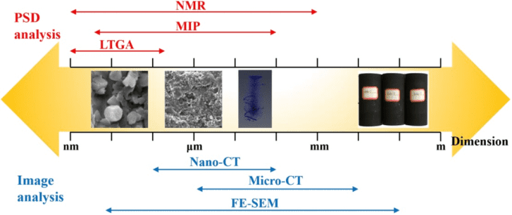 首先,使用LTGA、MIP和NMR測量六個頁巖樣品的PSD,然后使用FE-SEM和CT圖像分析技術,觀察這些頁巖樣品的內部結構。